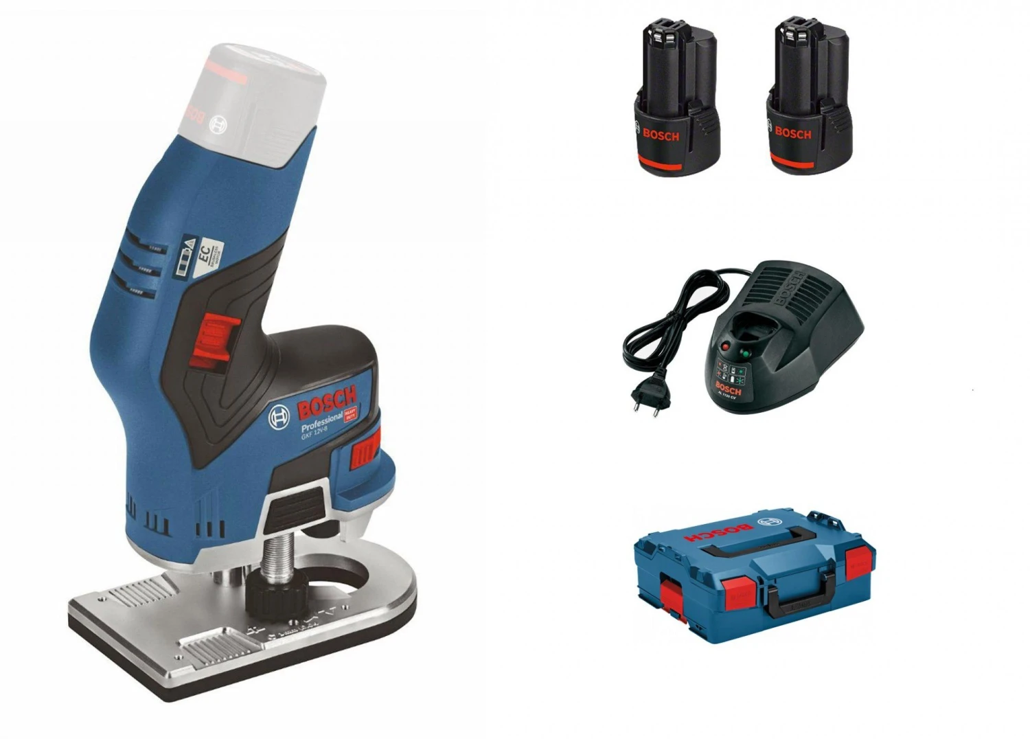 Bosch GKF 12V-8 12V Li-Ion Accu Kantenfrees Set (2x 3.0 Ah Accu) In L-Boxx – 06016B0000