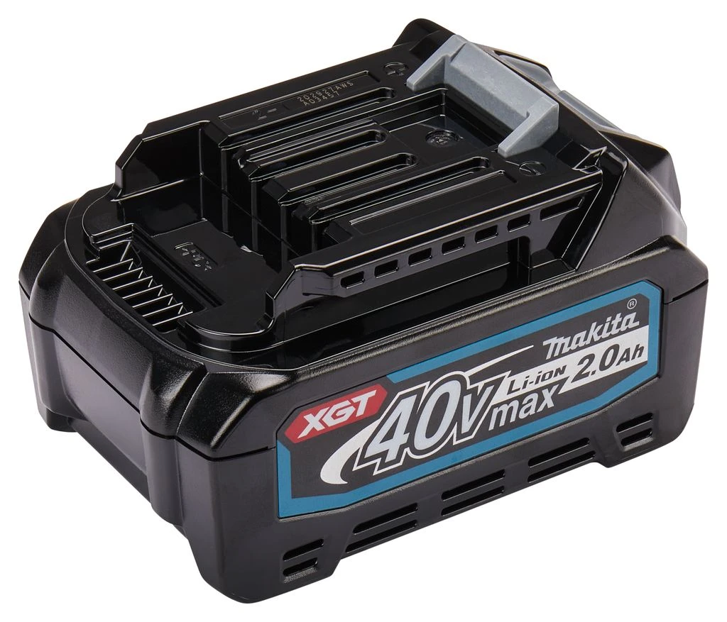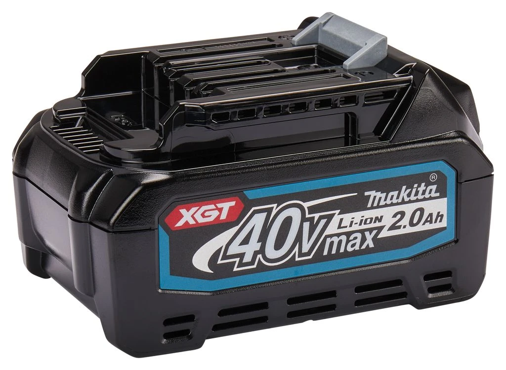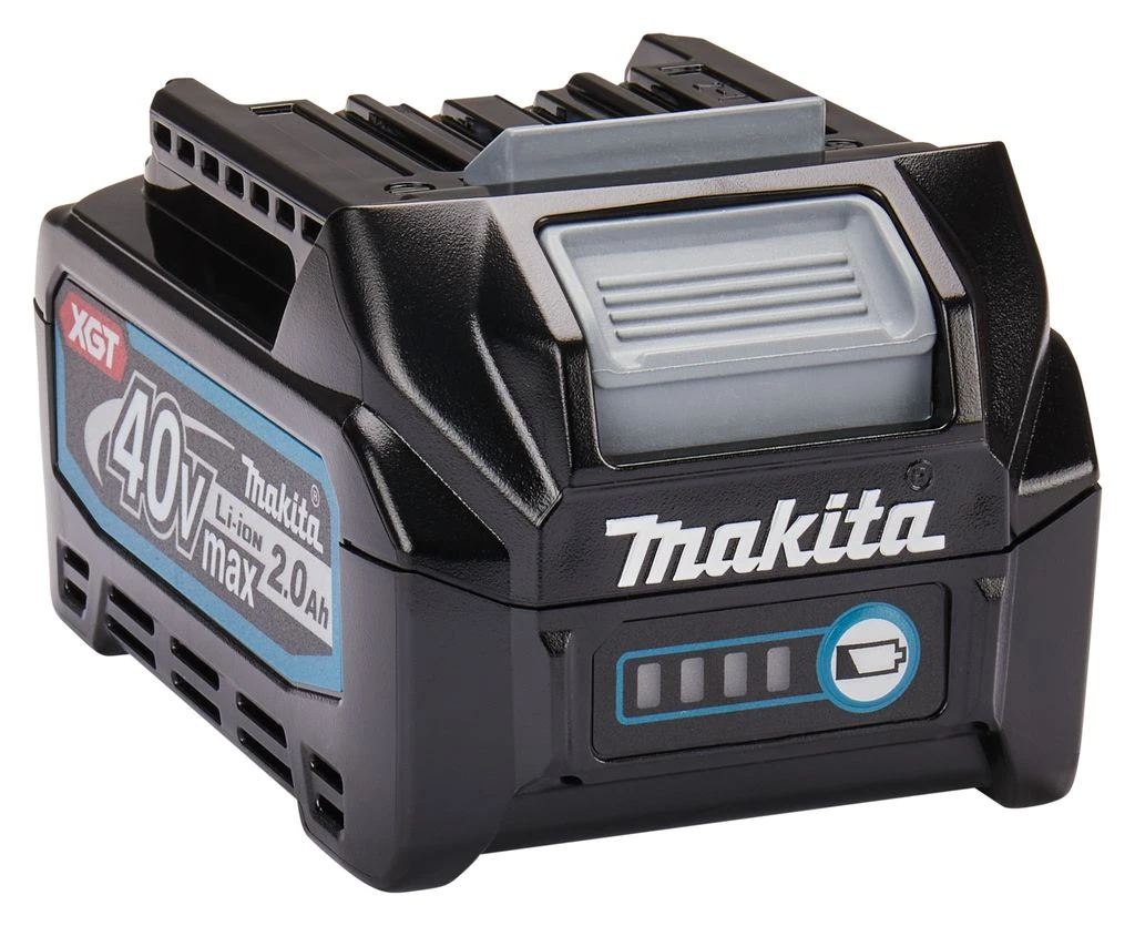 XGT 40 V Max Li-ion accu met een tankinhoud van 2,0 Ah. De accu is voorzien van een led indicator die de tankinhoud van de accu weergeeft. De machines, accu’s en oplader van het XGT-platform zijn standaard voorzien van elektronica, waardoor deze met elkaar kunnen communiceren. De oplader geeft de meest geoptimaliseerde oplading aan de accu afhankelijk van de status van de accu. In combinatie met de DC40RA snellader is de accu in slechts 22 minuten weer volledig geladen. Ook de machine reageert direct op de status van de accu. Afhankelijk van de status van de accu wordt de stroomtoevoer naar de machine geoptimaliseerd. Daarnaast is de accu gebouwd om zware omgevingsomstandigheden te weerstaan, zoals water en stof. Ze hebben een robuuste constructie, zijn beschermd tegen stof en ze hebben een spatwaterbestendig ontwerp. Kortom, een accu waar je op kunt bouwen