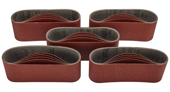Gesloten aluminiumoxide schuurband. Uitermate geschikt voor: hout, gelakt hout. Zeer geschikt voor: ferro metalen.