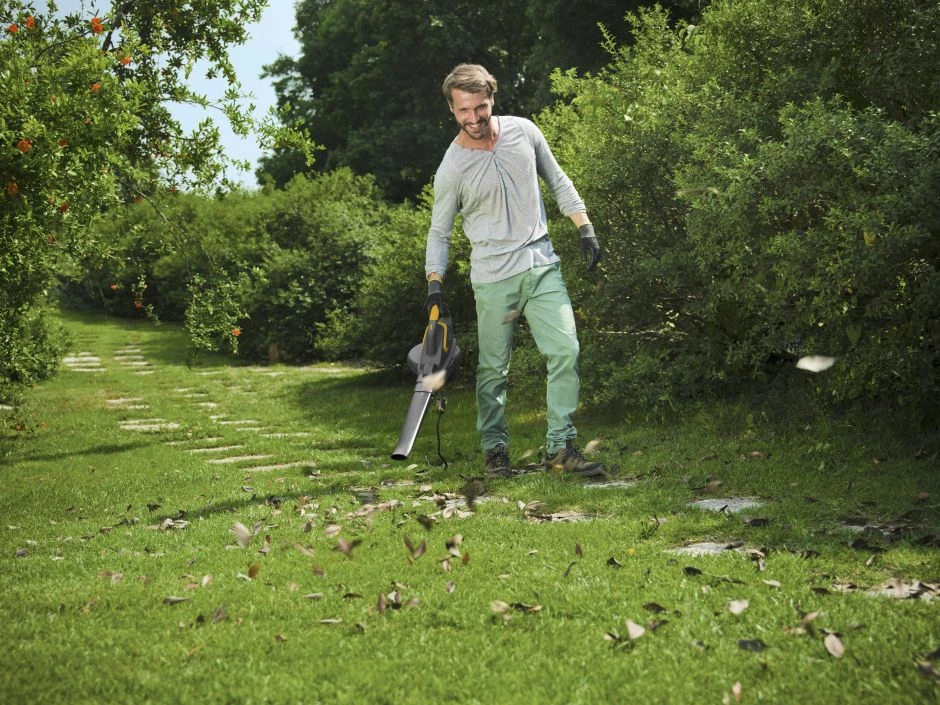 Bladblazer/-zuiger, aangedreven door een elektrische motor van 2600 W met maximaal luchtvolume van 7 m³/min. Bladopvangzak van 45 liter meegeleverd.